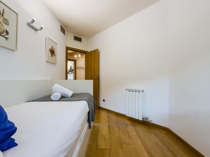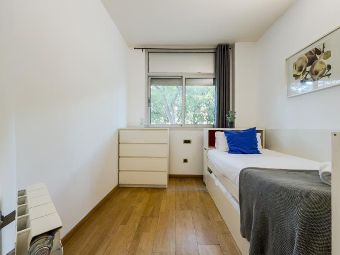Bienvenido a este luminoso y espacioso apartamento de cuatro dormitorios en el corazón de la Vila Olímpica de Barcelona. Diseñado para ofrecer comodidad y conveniencia, el apartamento tiene capacidad para hasta ocho personas, lo que lo convierte en un refugio perfecto para familias, amigos o viajeros de negocios que desean disfrutar de la ciudad mientras se alojan en un barrio tranquilo y moderno cerca del mar.